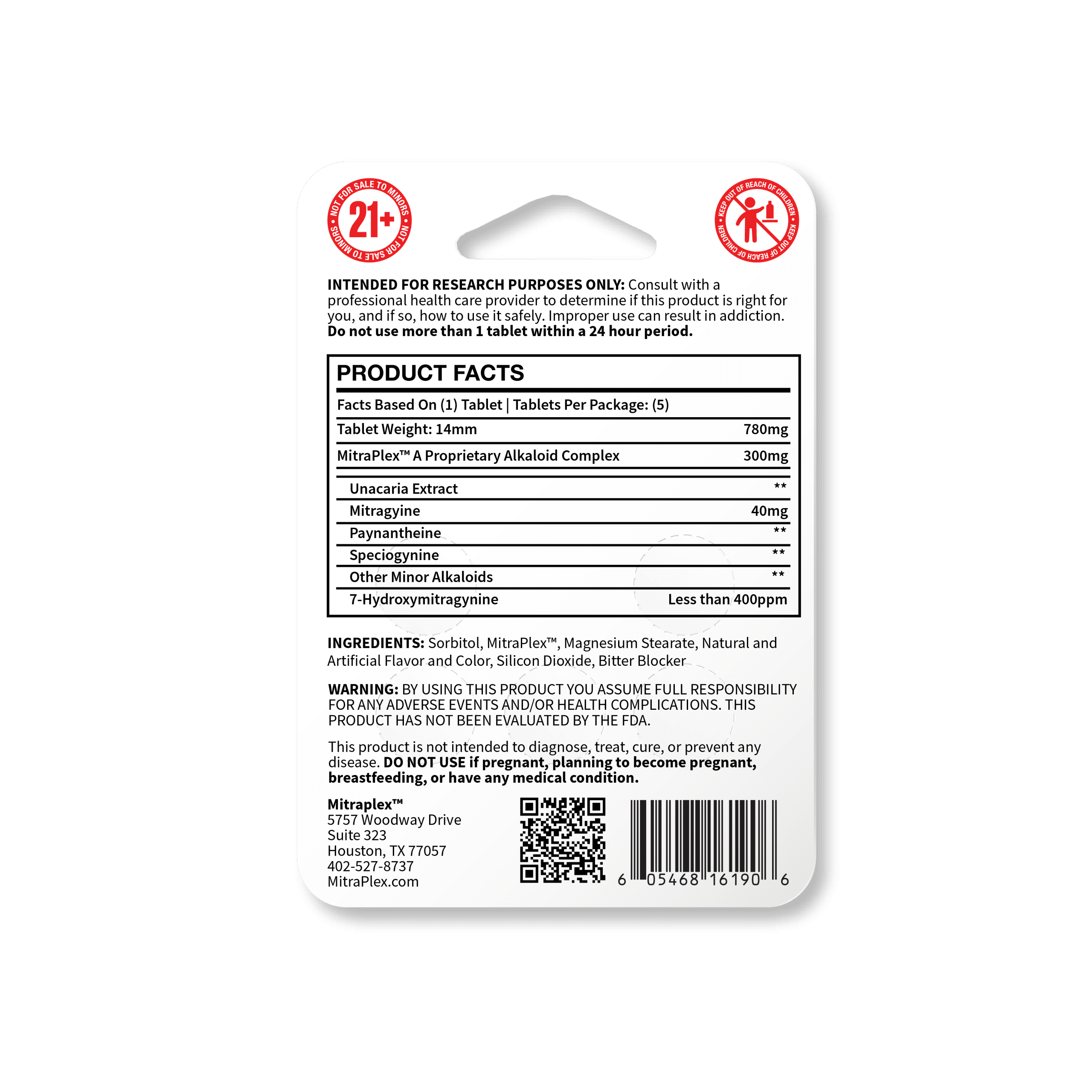 - Strength: 300 mg MitraPlex Advanced Alkaloid Complex per tablet